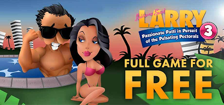 Passionate Patti in Pursuit of the Pulsating Pectorals! is the third game in Al Lowe's Leisure Suit Larry series. Larry Laffer has finally found the woman of his dreams, and can happily live with her together on the beautiful tropical island... until he gets thrown out of the house by his wife. His boss, who happens to be his (now ex-) father-in-law, fires him. Larry is all alone, without a woman, without a job, on an island that has long ceased to be a "tropical paradise" and is exploited by entertainers, lawyers, and alike. But never despair! Dressed in his irresistible leisure suit, Larry is about to conquer the world (or at least its female population) anew. Watch out, fairer sex, because Larry is back to his swinging self!